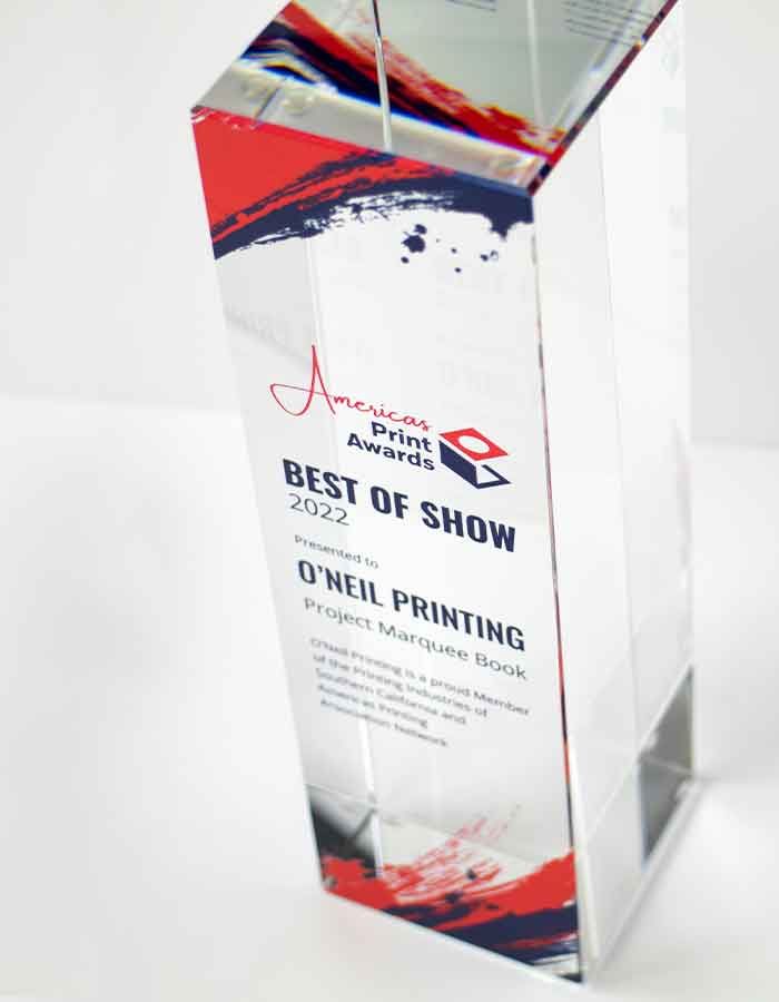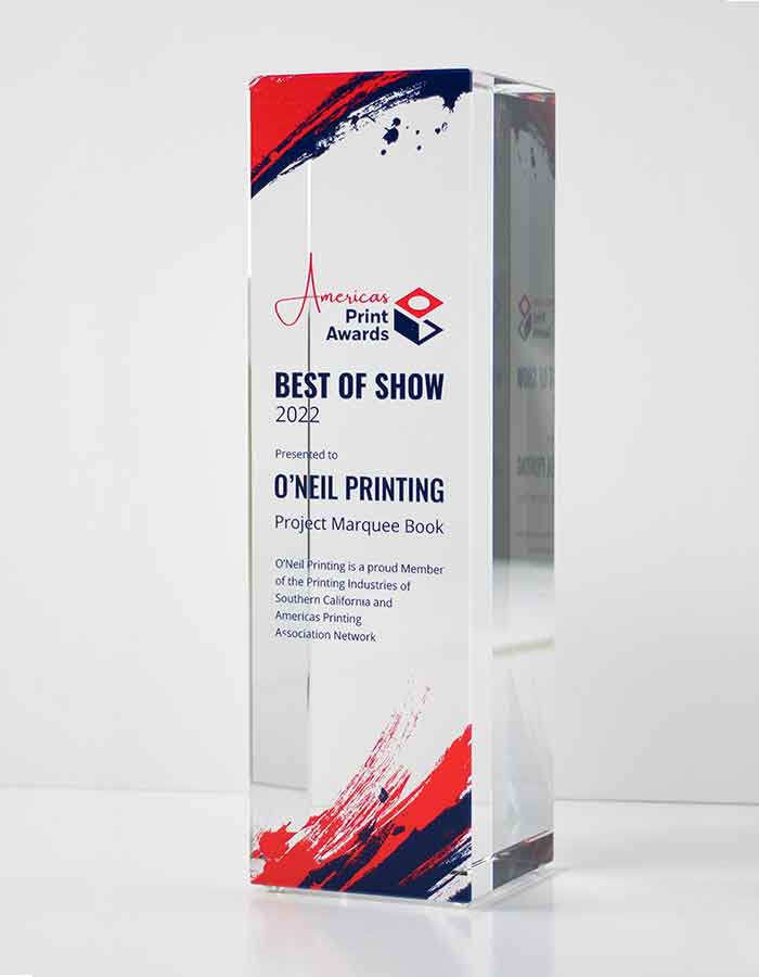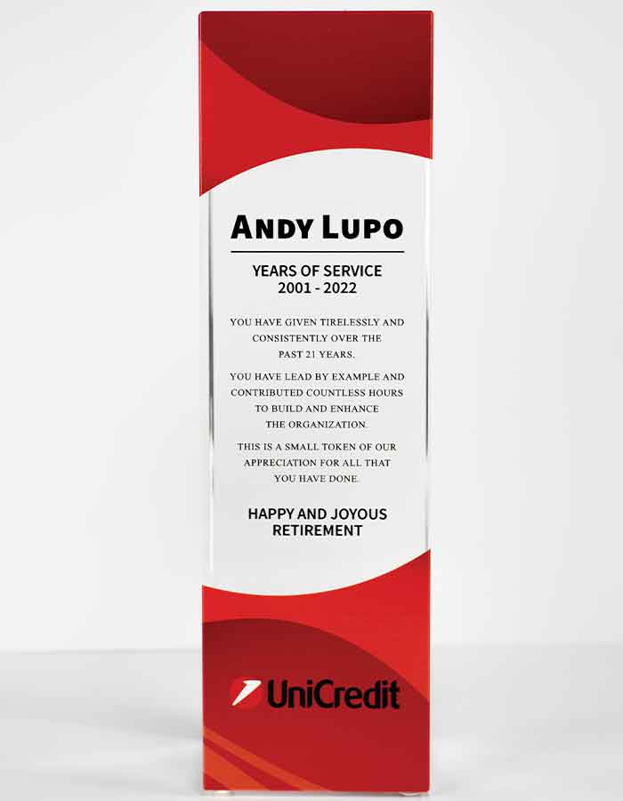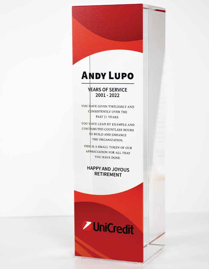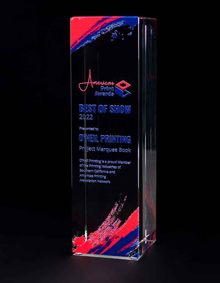Choose between elegant Sandblast Engraving or vibrant Cosmo Color Printing to create a custom award that you will fall in love with. Explore our inspiration gallery at the bottom of this page to see examples of how this award has been customized.