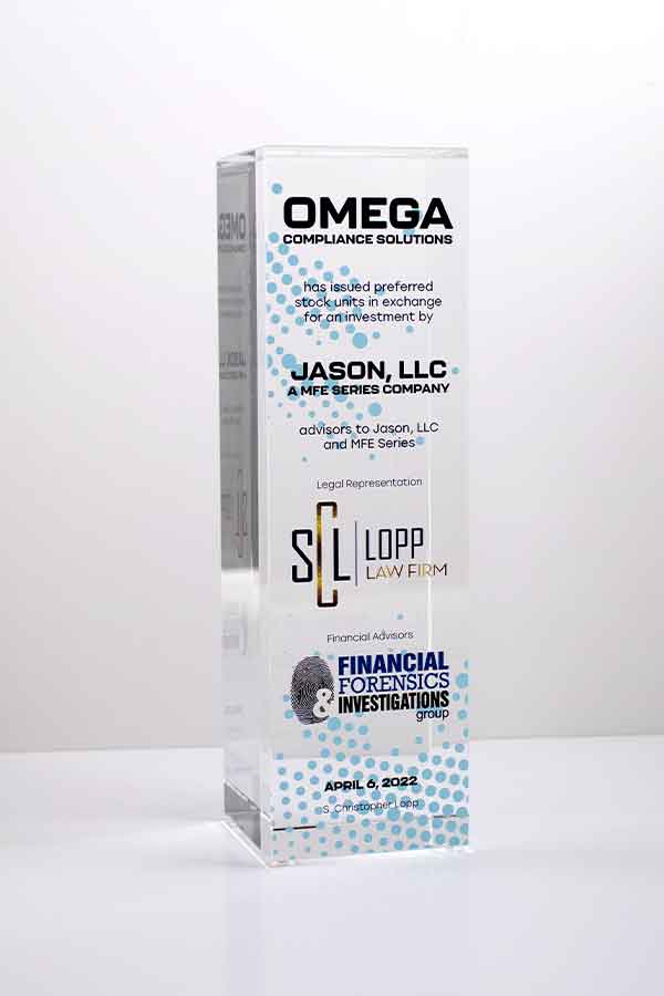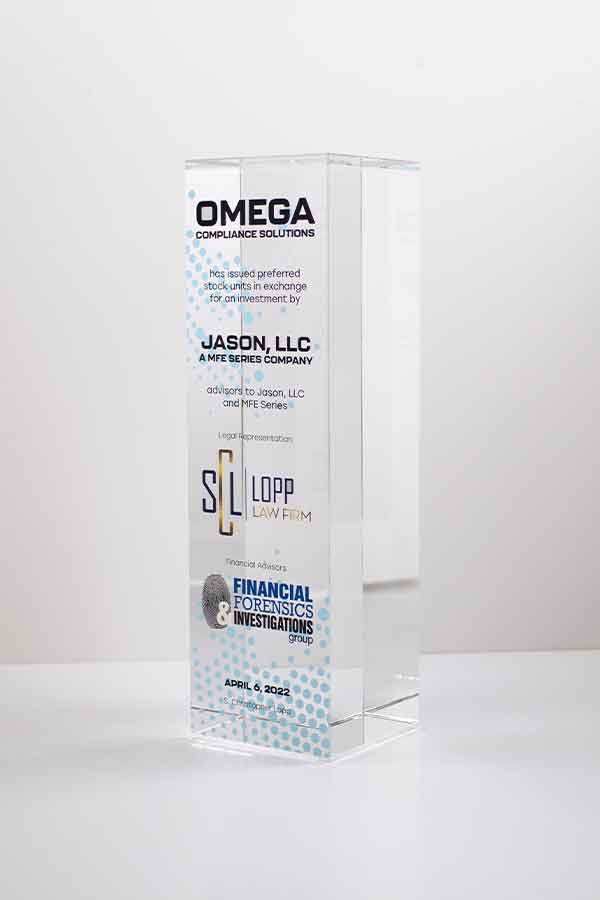 One of our most sleek and versatile pieces, the Crystal Pillar Deal Toy has a large imprint area to prominently display your logos and financial deal details! Impress your team and your partners with these solid crystal pieces.
