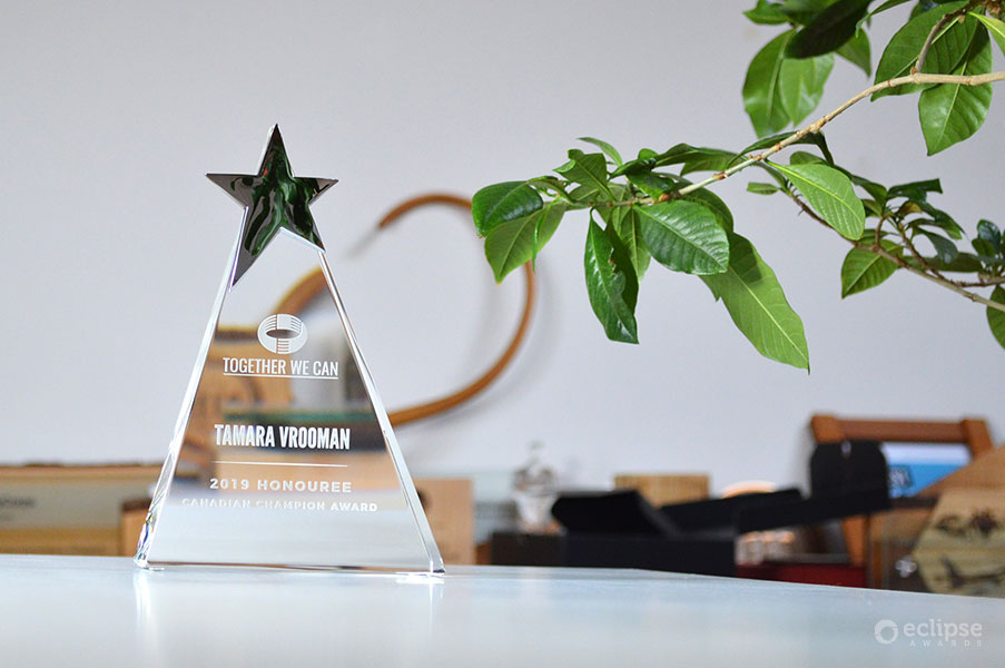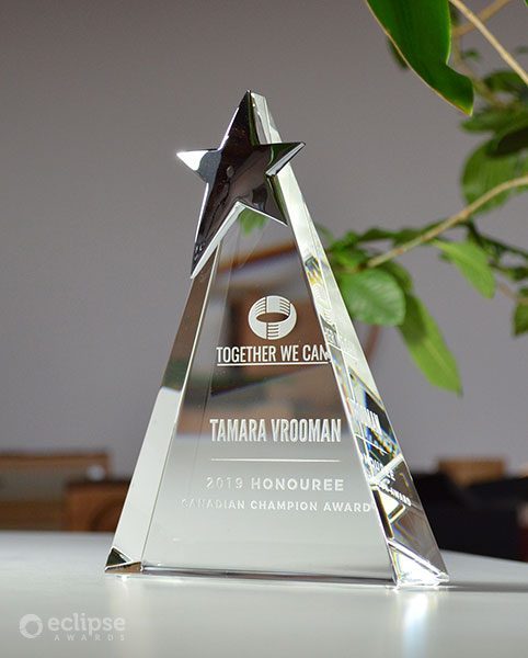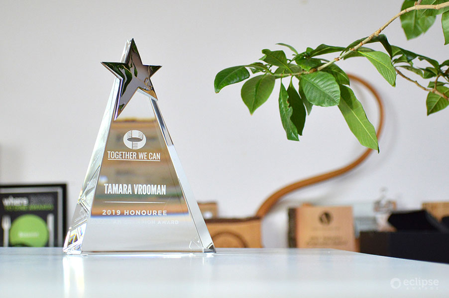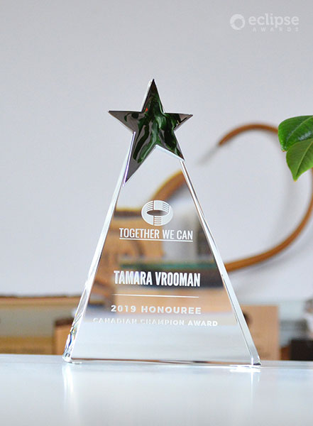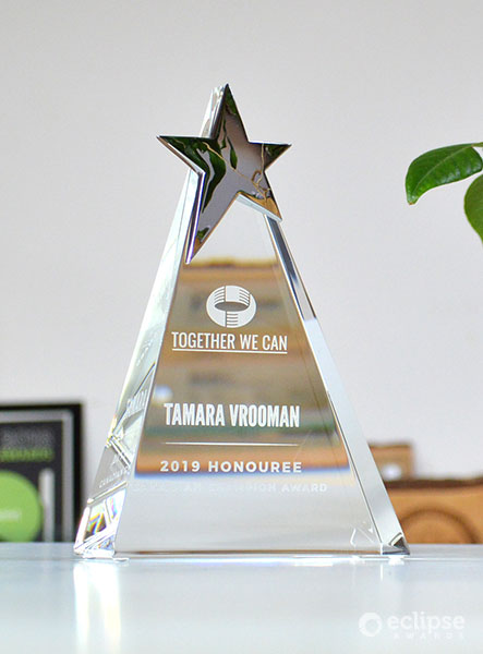 The sparkle and brilliance of sandblasted crystal awards generates excitement, and symbolizes prestige. Explore the photo gallery at the bottom of this page to find inspiring examples of how this award has been customized.