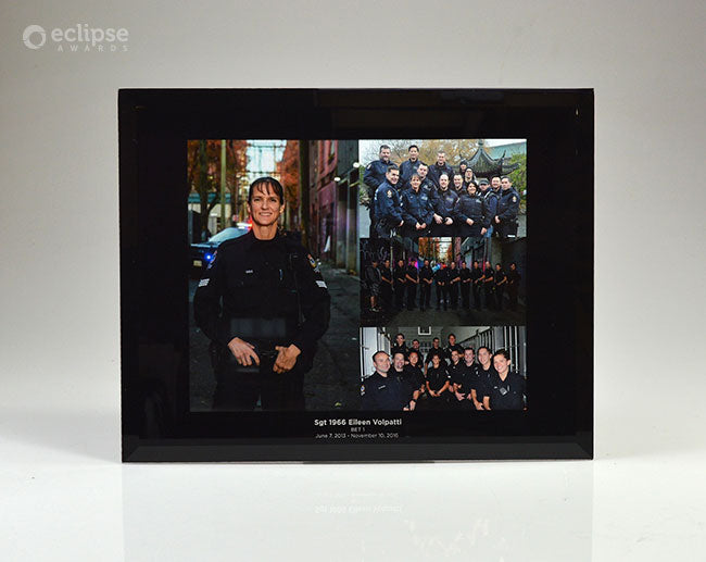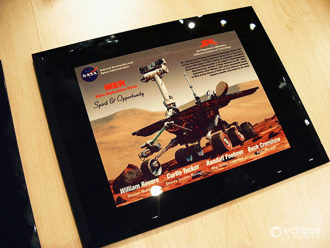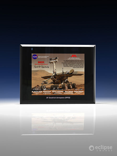 This plaque includes hardware to mount vertically or horizontally. In lieu of etching, a full color, custom-printed insert is included in the price of every piece.