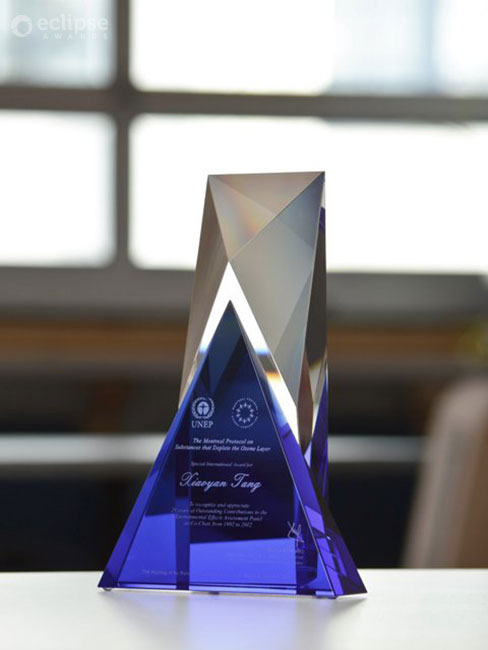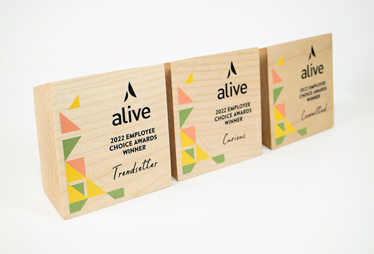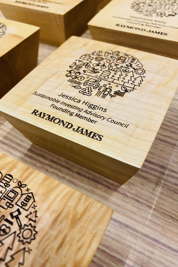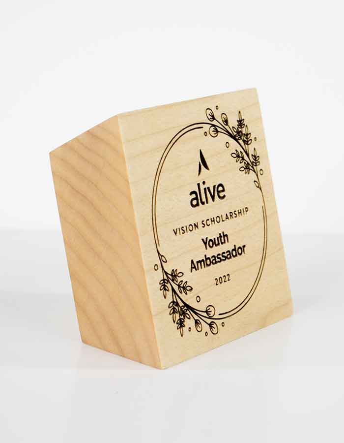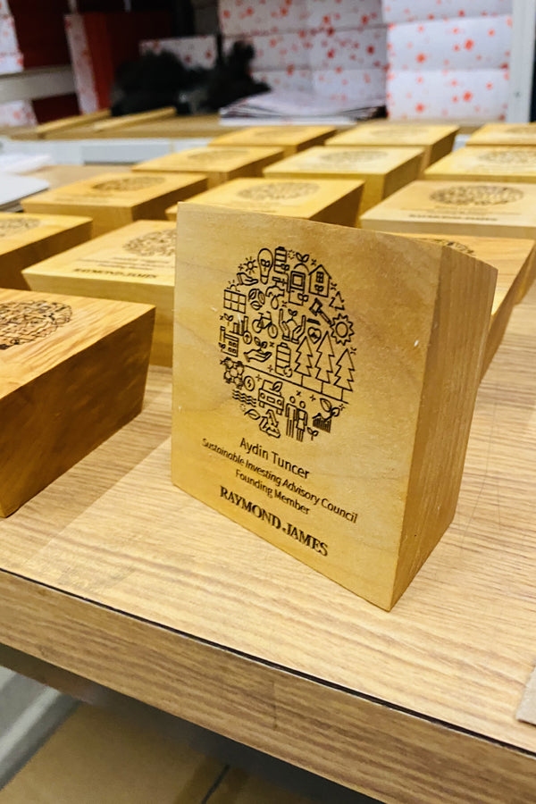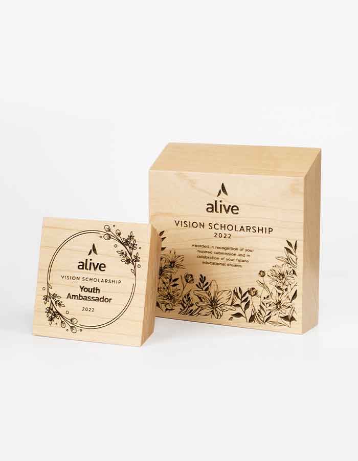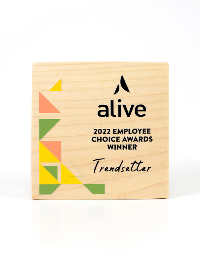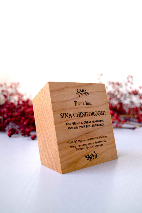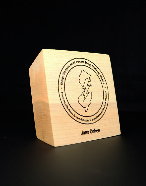 Personalized with solar-powered laser engraving, this piece includes an eco-friendly presentation box, ideal for companies prioritizing environmental responsibility. The Maple Block Award also offers the option of full-color printing.