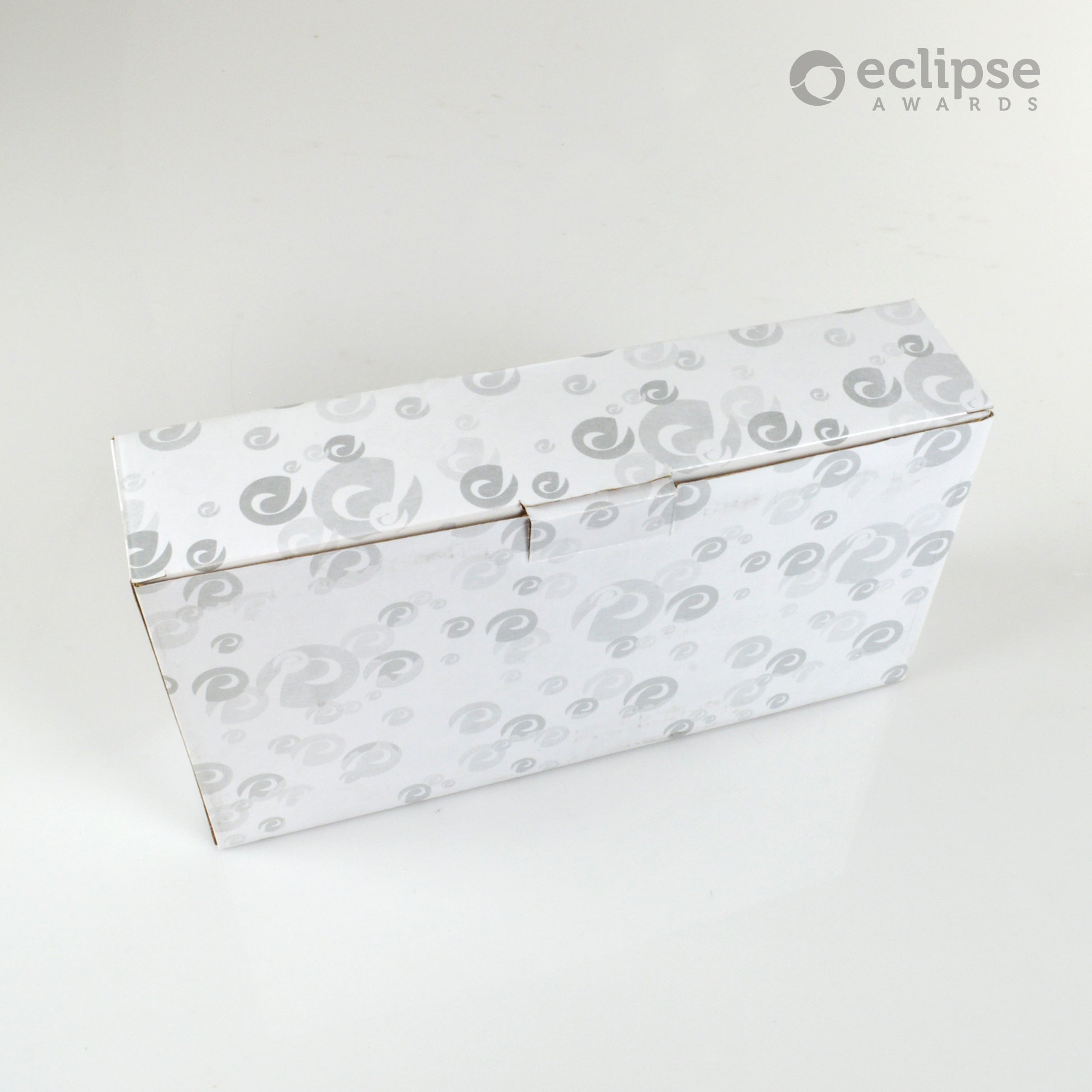 With clean and simple lines, the New Horizon Award symbolizes the possibilities of tomorrow. This award has ample room for customization. Its curved shape eliminates the need for a base for an elegant minimalist presentation.