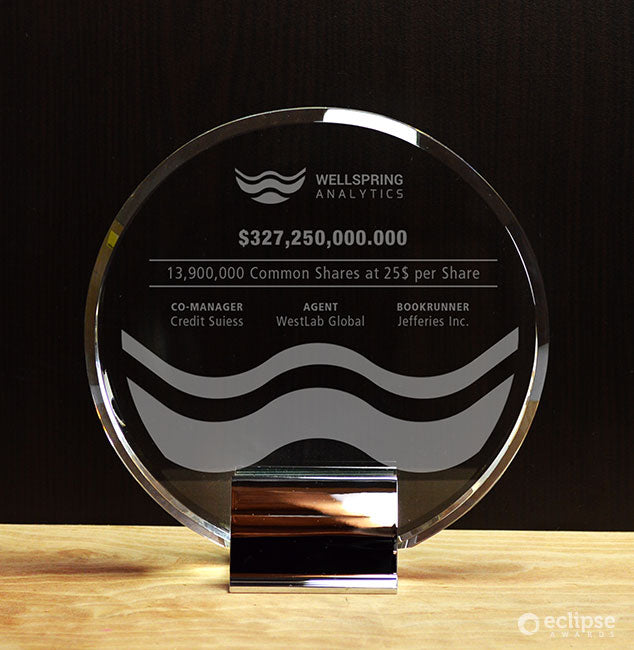 Timeless and sophisticated, Crystal Ovation Financial Tombstones feature brilliant solid crystal and polished chrome. Crystal Ovation Financial Tombstones can be personalized with your logos and details of your deal. You'll feel proud to present these beautiful crystal deal toys to your team!